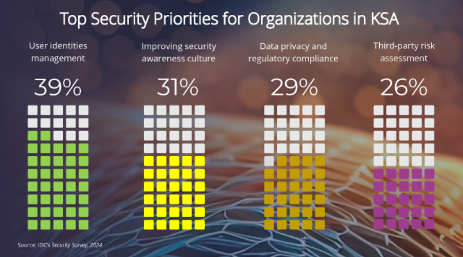 As Saudi Arabia accelerates its digital transformation journey under Vision 2030, CISOs are at the forefront of navigating the nation’s evolving cybersecurity priorities. IDC’s Security Survey reveals that user identity management, security awareness, data privacy and compliance, and third-party risk assessment are the top areas of focus for organizations in the Kingdom. These findings underscore the urgent need for strong, adaptive leadership to safeguard digital ecosystems while enabling innovation.